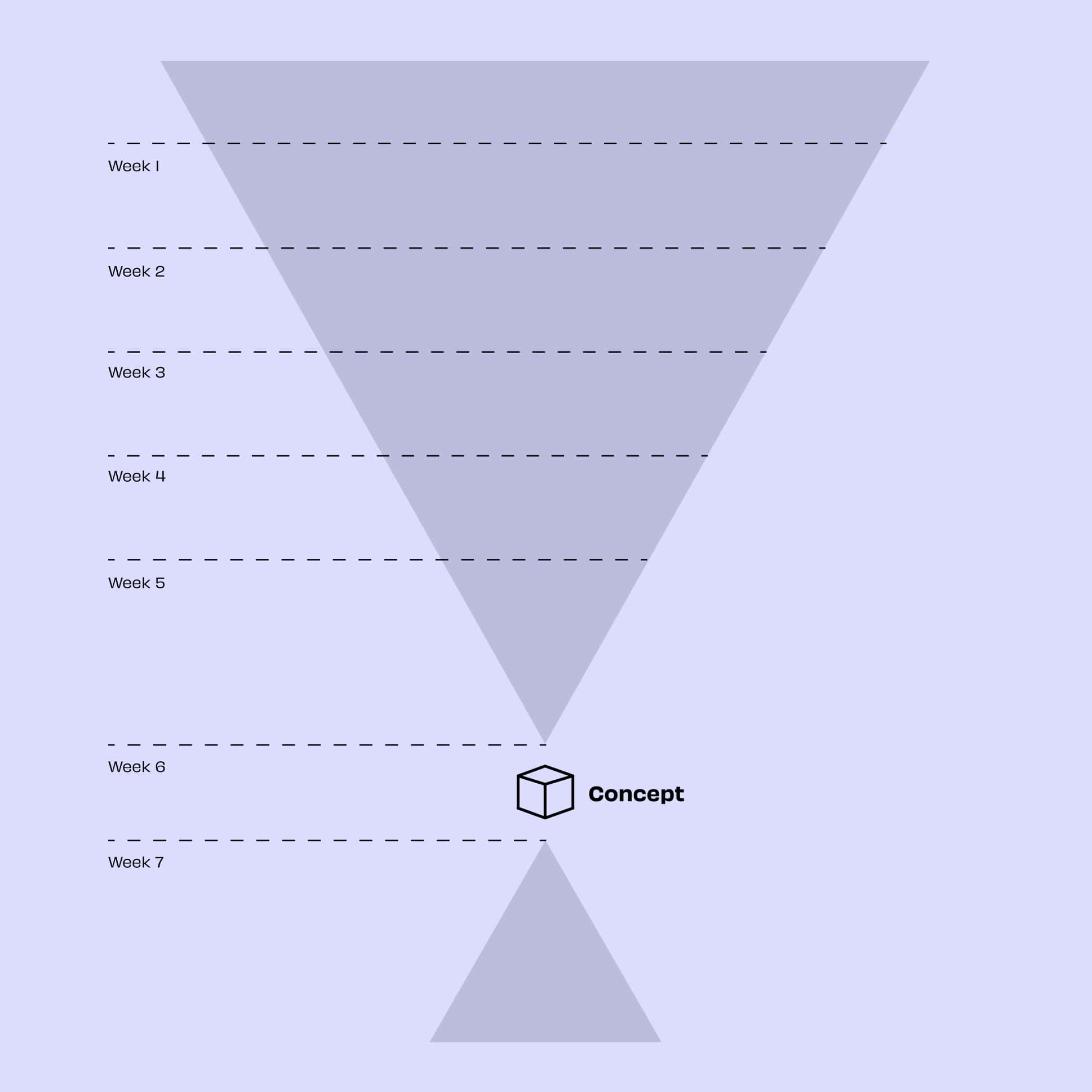 Our seven-week project approach consists of seven phases, delivering actionable insights and recommendations, along with a well-designed concept that clearly outlines how it will improve a given business and what steps to take next.